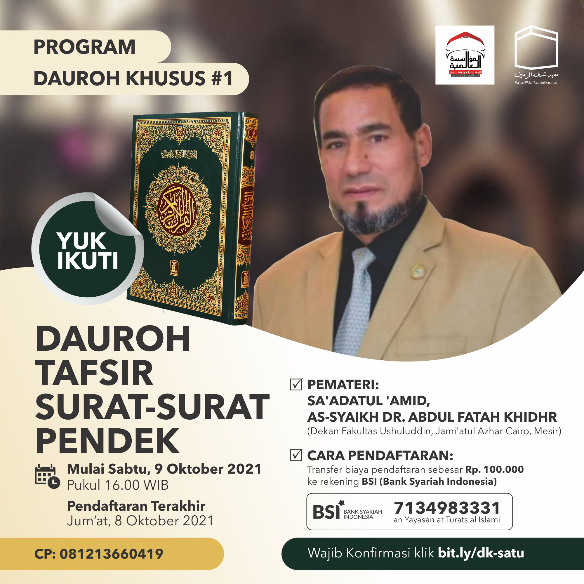 Dalam dua bulan ke depan, Program Talaqqiy Kitab Ma’had Wakaf Syaraful haramain, hadir dalam bentuk Dauroh Tafsir Qisharus Suwar (Dauroh Tafsir Surat-surat Pendek).