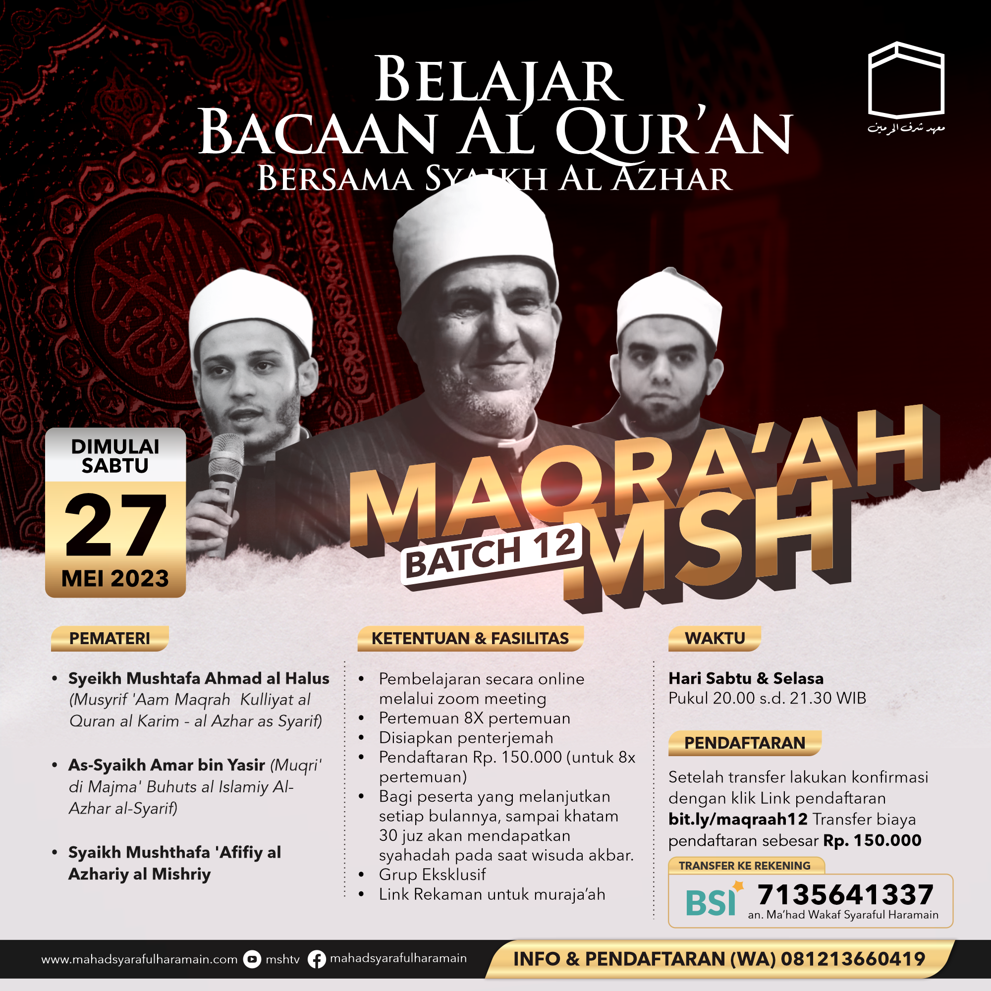 Belajar bacaan Al Qur’an dengan dibimbing langsung oleh Masyaikh Al Azhar Cairo Mesir secara online melalui zoom meeting.